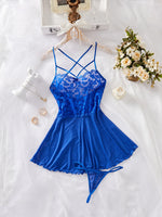 Design élégant et audacieux : La nuisette bleue courte combine une coupe sexy et féminine, mettant en valeur les jambes grâce à sa longueur au-dessus des cuisses.